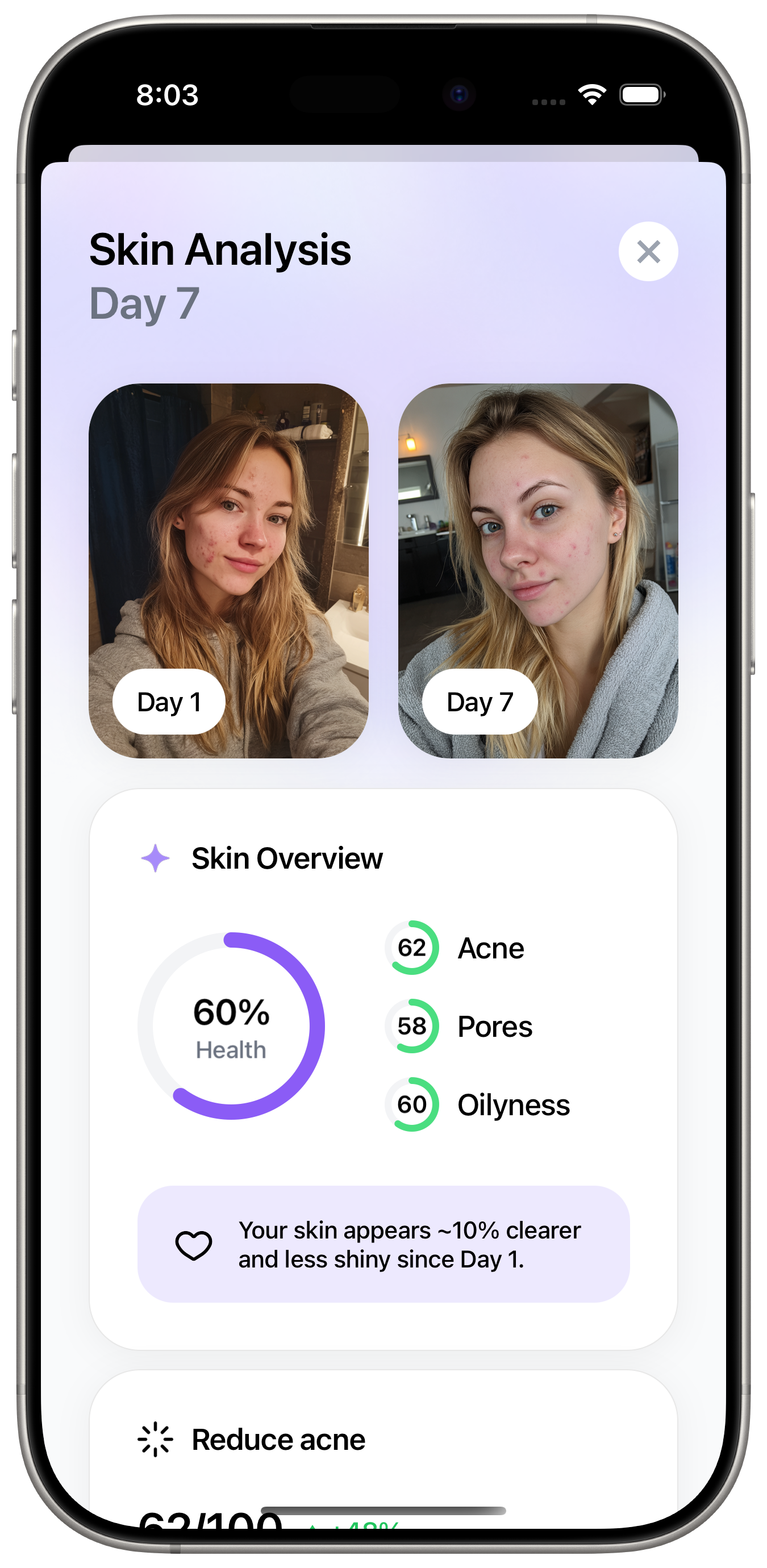 Scan your face, get your personalized routine, and track your progress with weekly reports.